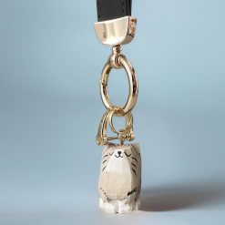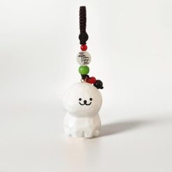 Móc khóa gỗ chó trắng 4.0×3.8×4.2 cm thủ công