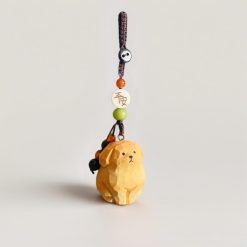 Móc Khóa Gỗ Chó Vàng 4×3 cm, chạm tay