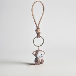 Móc khóa gỗ khỉ nâu 4.1×4.0x3.0 cm thủ công