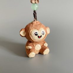 Móc Khóa Gỗ Khỉ Nâu 4×3 cm, chạm tay