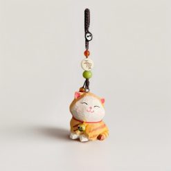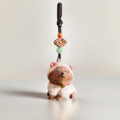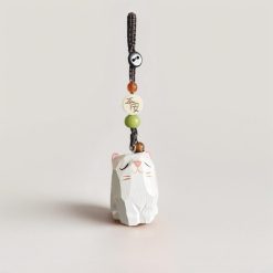 Móc khóa gỗ mèo trắng 3.6×3.3×2.6 cm thủ công