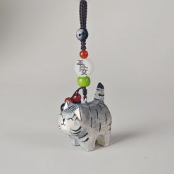 Móc Khóa Gỗ Mèo Vằn Xám 4×3 cm, chạm tay