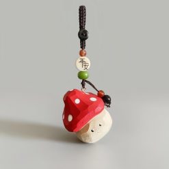 Móc Khóa Gỗ Nấm Đỏ Chấm Trắng 4.7×3.7 cm, chạm tay