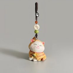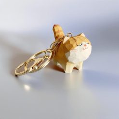 Móc khóa mèo vàng gỗ sơn tay 4.3×3.7×2.3 cm