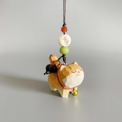 Móc khóa mèo tam thể gỗ điêu khắc thủ công