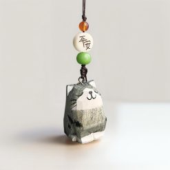 Móc khóa mèo gỗ tai xám điêu khắc thủ công