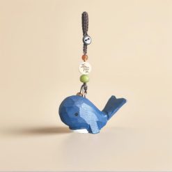 Móc khóa gỗ cá voi xanh 6.7×3.3×2.4 cm thủ công