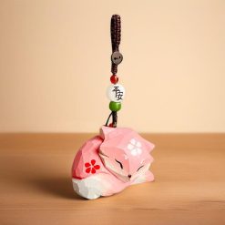 Móc Khóa Gỗ Cáo Hồng 5×5 cm, chạm tay