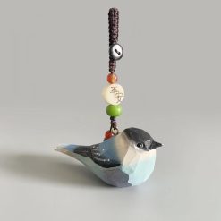 Móc khóa gỗ chim magpie 7.5×3.3×3.1 cm thủ công