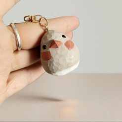 Móc Khóa Gỗ Chim Cú Tuyết 4.5×3.5 cm, chạm tay