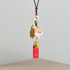 Móc khóa gỗ chó 4.0×3.5×3.1 cm thủ công treo xe 30 cm