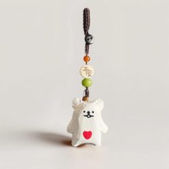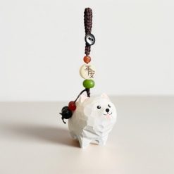Móc Khóa Gỗ Chó Samoyed 4.7×4 cm, chạm tay
