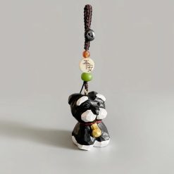 Móc khóa gỗ chó Schnauzer 4.0×3.0x2.5 cm thủ công