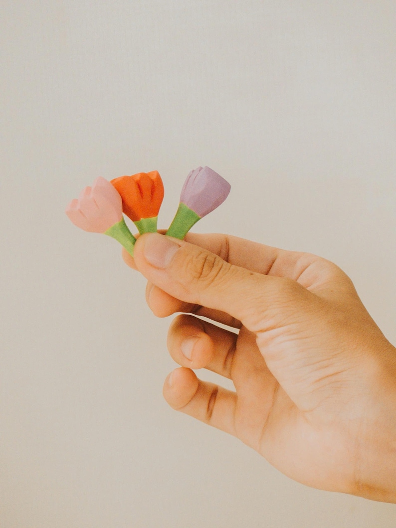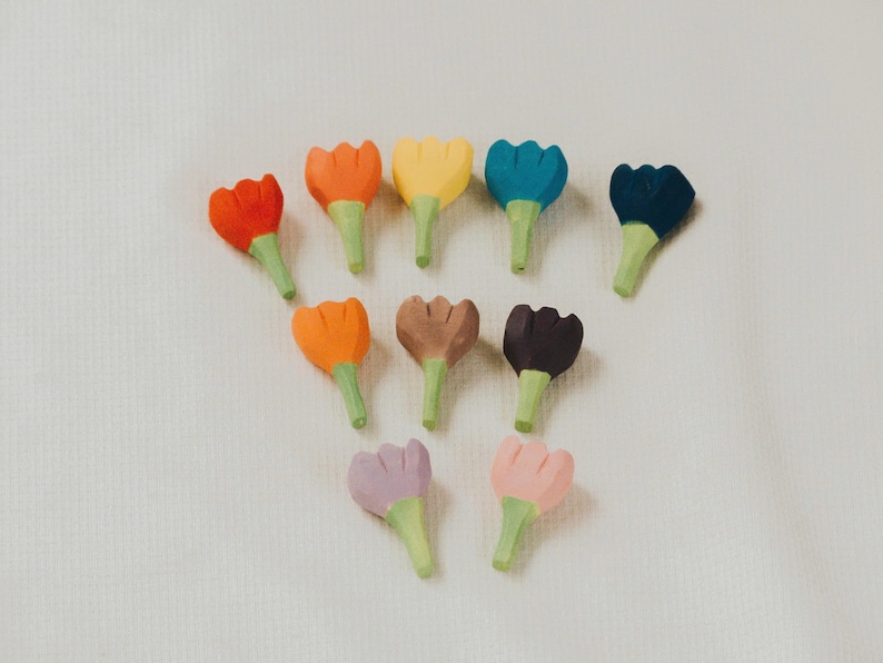 Bộ 10 bông hoa gỗ thủ công sơn tay 3x2cm