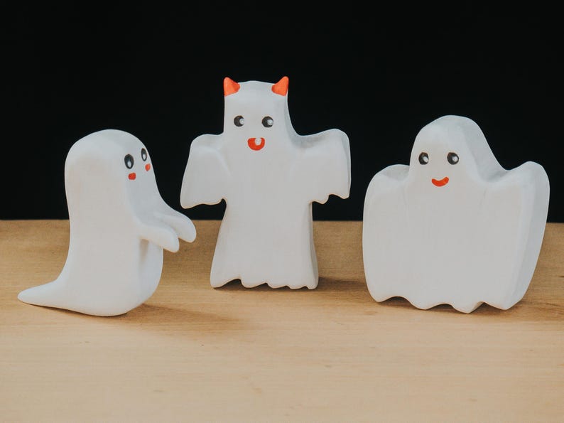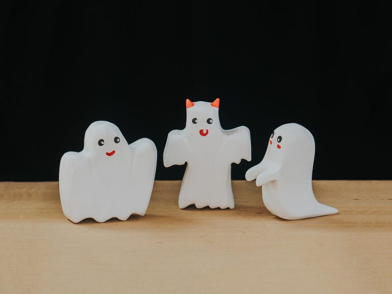 – Chất liệu: gỗ tự nhiên, thủ công, bo tròn cạnh, sơn tay bằng màu gốc nước. – Kích thước: ma 1 (7 x 7 cm), ma 2 (7 x 7 cm), ma 3 (8 x 6.5 cm) – đã quy đổi từ inch sang cm. – Màu sắc: phối cam, đen, tím – đặc trưng của Halloween. – Thiết kế: tạo hình ma đáng yêu, dễ thương nhưng vẫn mang nét huyền bí. – Công dụng: khuyến khích trẻ chơi giả tưởng, phát triển trí tưởng tượng, đồng thời tìm hiểu về phong tục Halloween. – Lưu ý: do đặc tính gỗ tự nhiên, vân gỗ và sắc độ có thể khác nhau nhẹ, làm cho mỗi sản phẩm trở nên độc đáo.