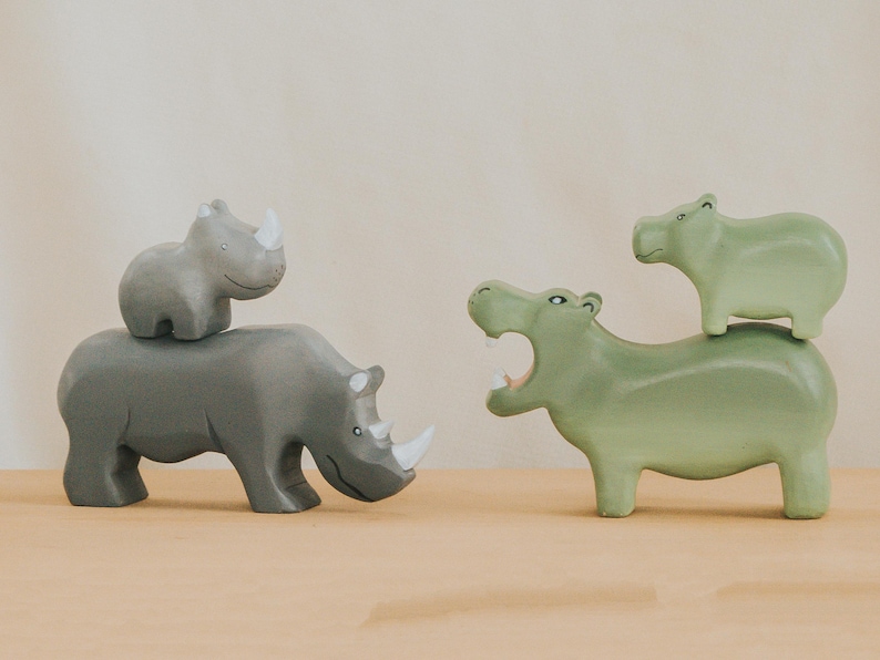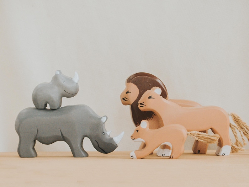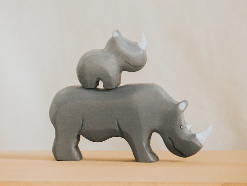 Đem cả thảo nguyên châu Phi vào thế giới tưởng tượng của bé với đồ chơi tê giác bằng gỗ thủ công. Được chạm khắc từ gỗ tự nhiên và sơn tay tỉ mỉ, bộ tê giác (mẹ & con) mang lại trải nghiệm vui chơi sáng tạo, an toàn và đầy tính giáo dục.