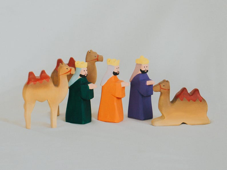 Tái hiện khung cảnh Giáng Sinh linh thiêng với bộ tượng Ba Vua bằng gỗ thủ công. Mỗi chi tiết được chạm khắc tinh xảo và sơn tay sống động, tạo nên không khí ấm áp và trang nghiêm cho hang đá Noel. Bộ tượng không chỉ là vật trang trí, mà còn là biểu tượng của sự thành kính và ý nghĩa tâm linh trong mùa lễ hội.