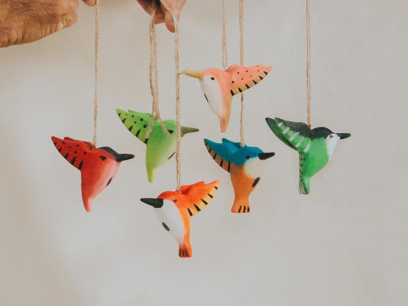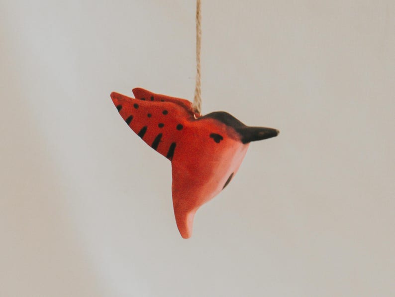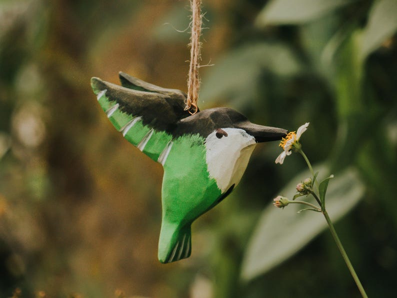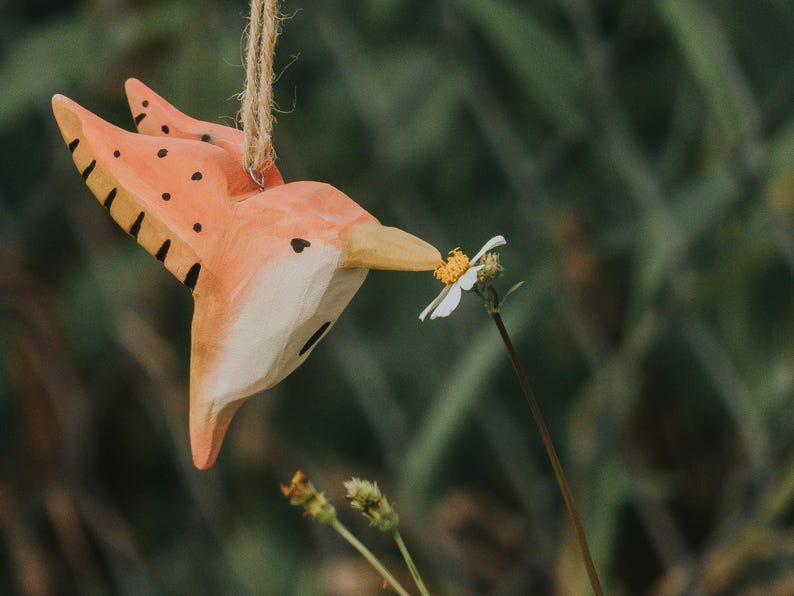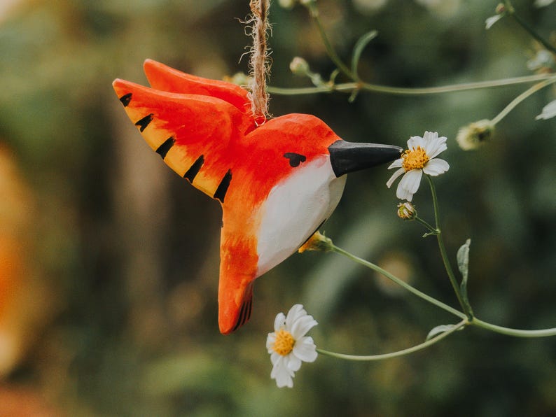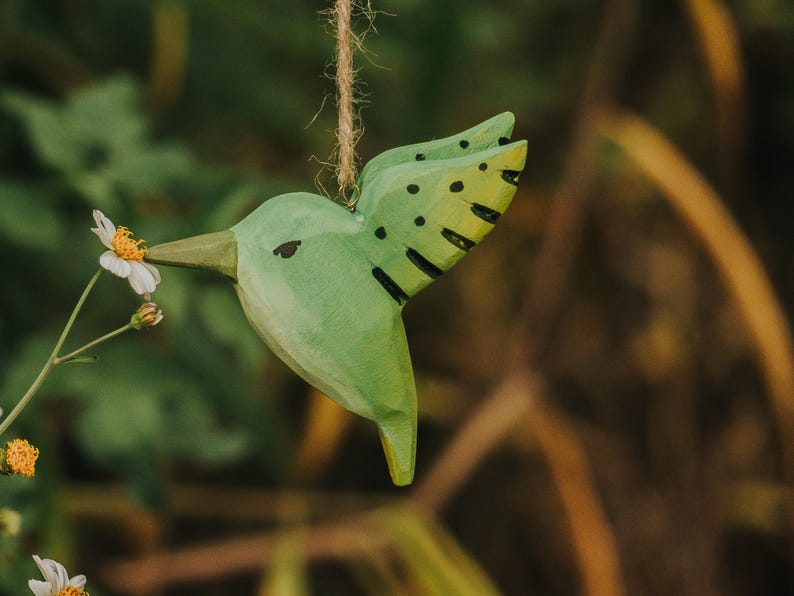 Thêm sắc màu và ý nghĩa cho mùa lễ hội với chim ruồi gỗ sơn tay treo Giáng Sinh. Từng chi tiết được chạm khắc thủ công tinh xảo, đôi cánh, chiếc mỏ đến từng đường nét đều được tô vẽ sống động. Khi treo lên cây thông và ánh sáng Noel chiếu vào, chú chim ruồi như bừng sáng, mang lại niềm vui và hy vọng cho cả gia đình.