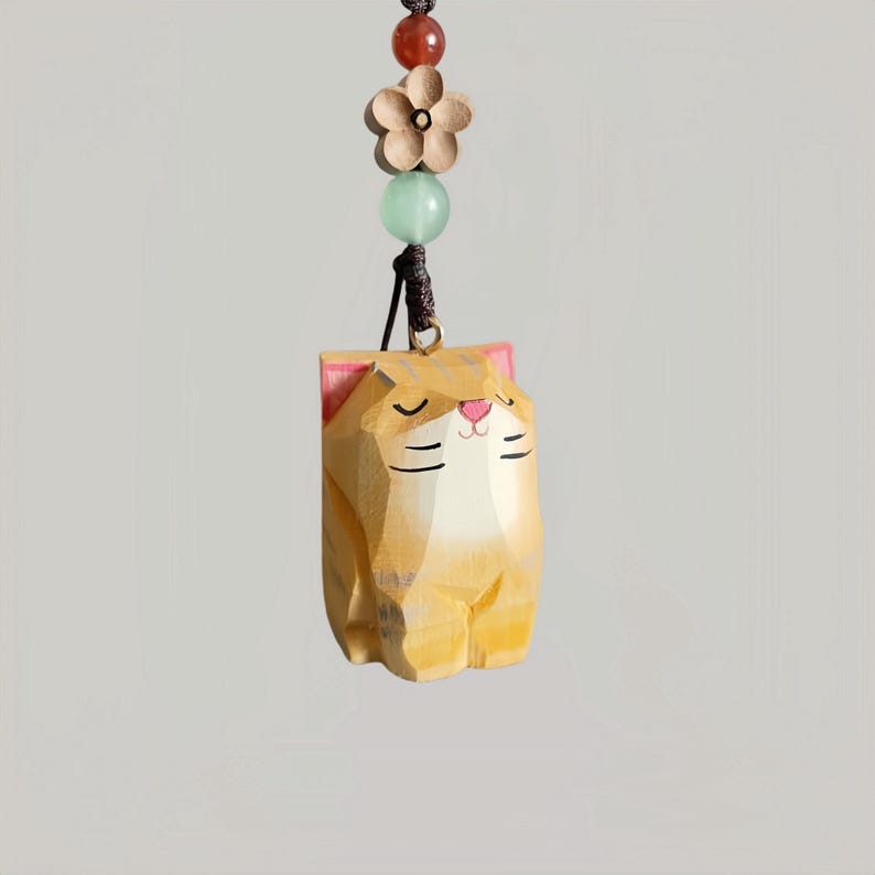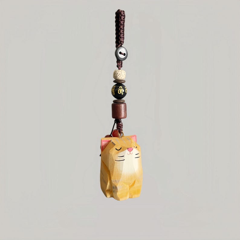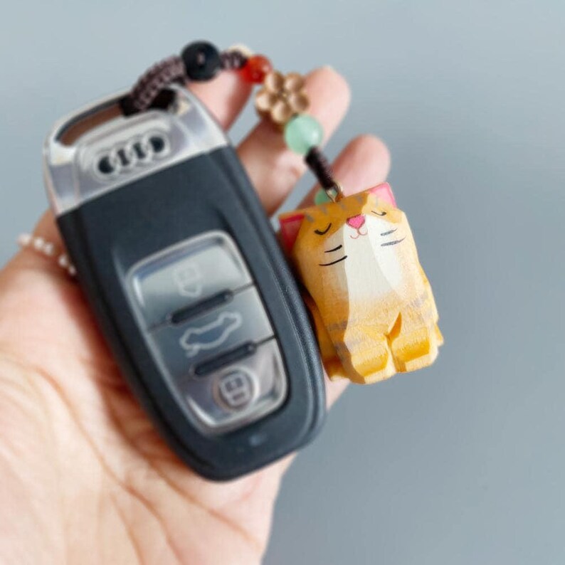 Móc khóa mèo gỗ ngủ ngon điêu khắc thủ công