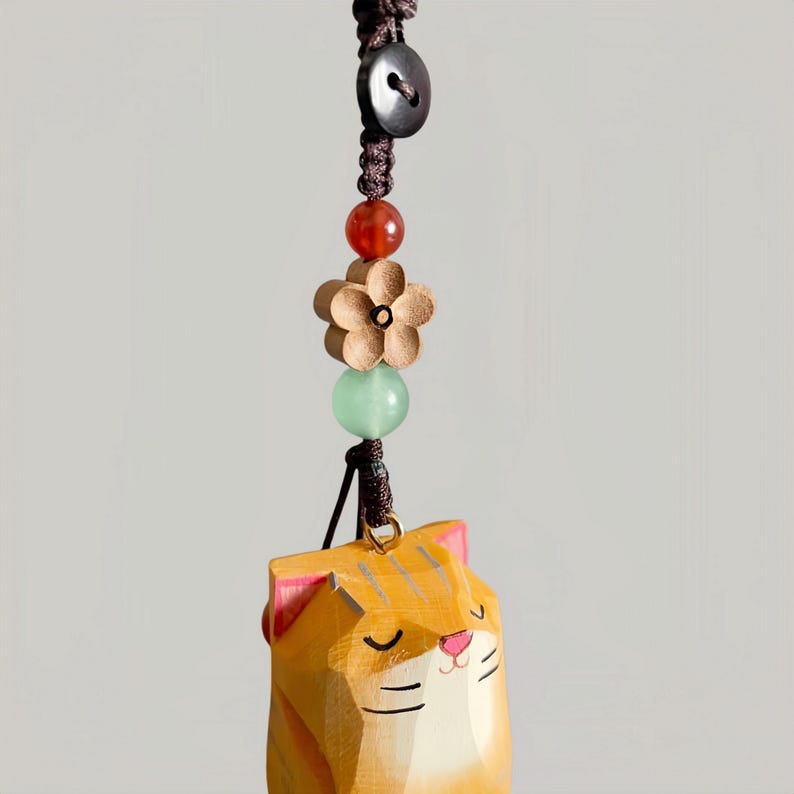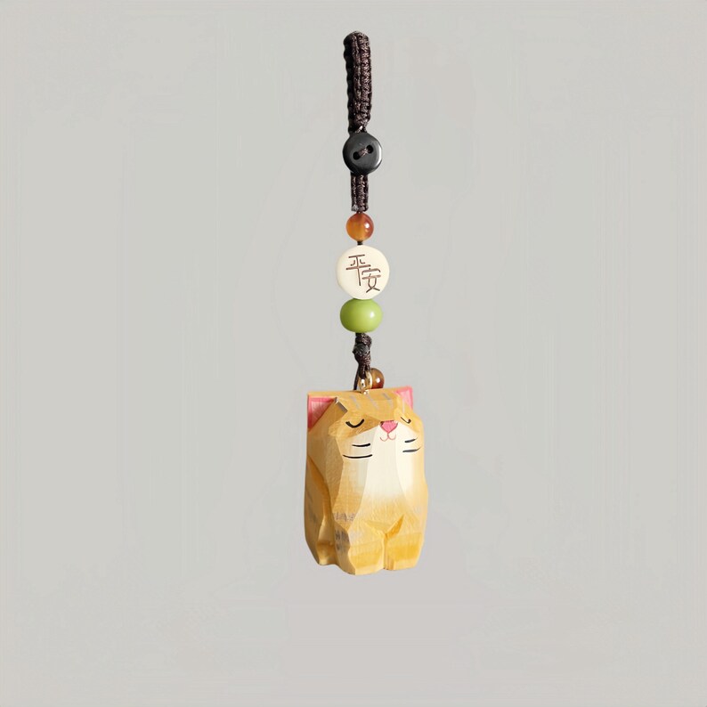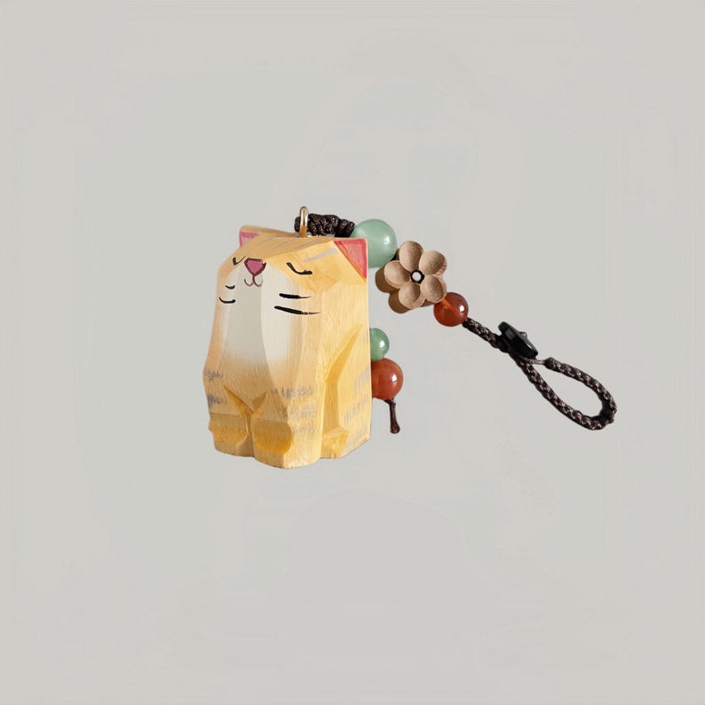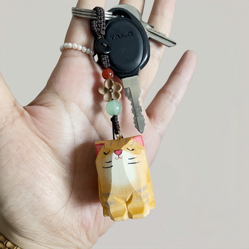 Móc khóa mèo được điêu khắc thủ công từ gỗ Basswood tự nhiên, sơn tay tinh xảo, đính hạt pha lê cao cấp và chuông kim loại có thể tháo rời; tượng gỗ cỡ 40 × 30 × 33 mm gắn dây bện dài 7 cm, nhẹ gọn để treo chìa khóa, balô hay túi xách. Để giữ sản phẩm bền đẹp, lau nhẹ bằng khăn mềm khô, tránh ngâm nước, hóa chất và nhiệt cao; định kỳ thoa lớp dầu khoáng hoặc sáp ong mỏng dưỡng gỗ và dùng khăn sợi nhỏ vệ sinh hạt pha lê, kim loại.