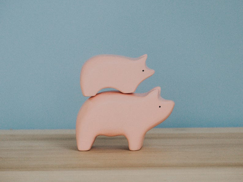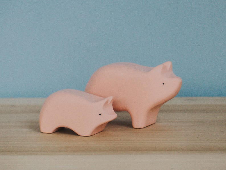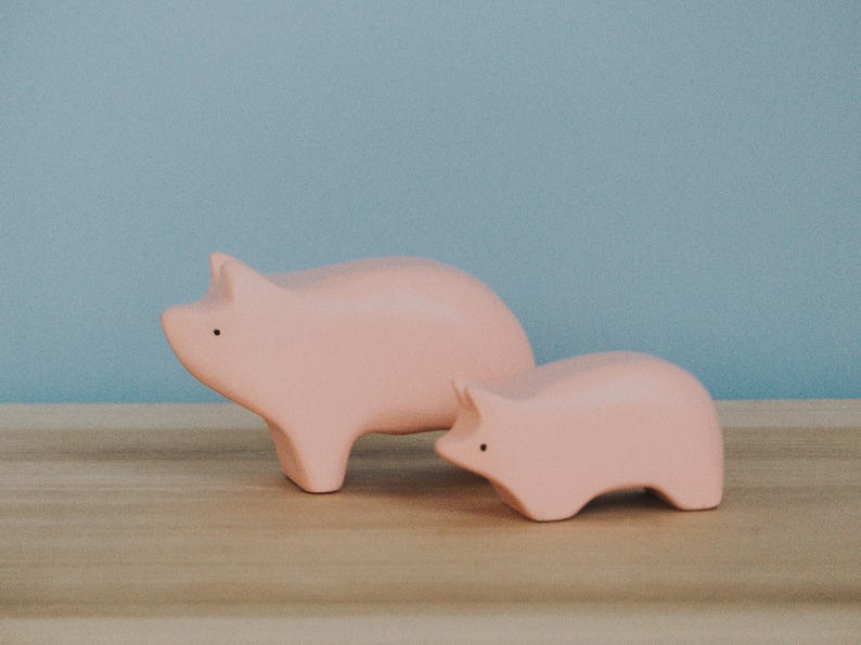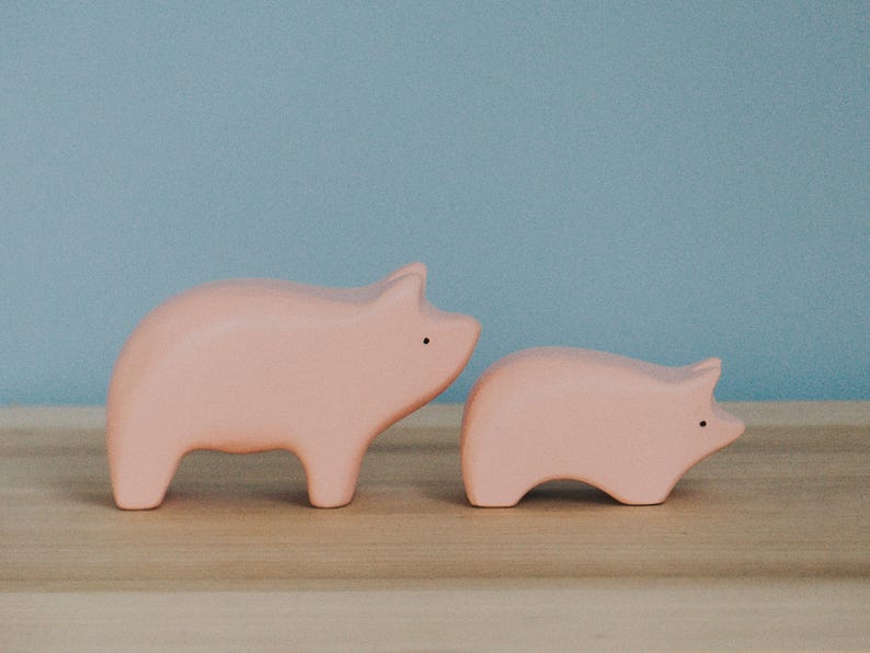 Khám phá nông trại với gia đình heo gỗ thủ công sơn tay. Được chế tác từ gỗ tự nhiên và hoàn thiện nhẵn mịn, bộ heo gỗ mang phong cách Montessori – Waldorf giúp trẻ rèn luyện kỹ năng kể chuyện, phát triển tư duy sáng tạo và tăng cường kết nối với thế giới tự nhiên. Với thiết kế bo tròn an toàn và màu hồng nhạt đáng yêu, đây vừa là món đồ chơi vừa là vật trang trí nursery ấm áp.