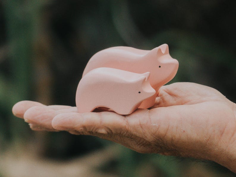 Mỗi chú heo gỗ đều có vân gỗ và màu sắc riêng biệt, khẳng định giá trị thủ công độc bản. Đây là món quà bền vững, vừa để chơi vừa để trưng bày, phù hợp cho trẻ em và người yêu thích đồ gỗ handmade.