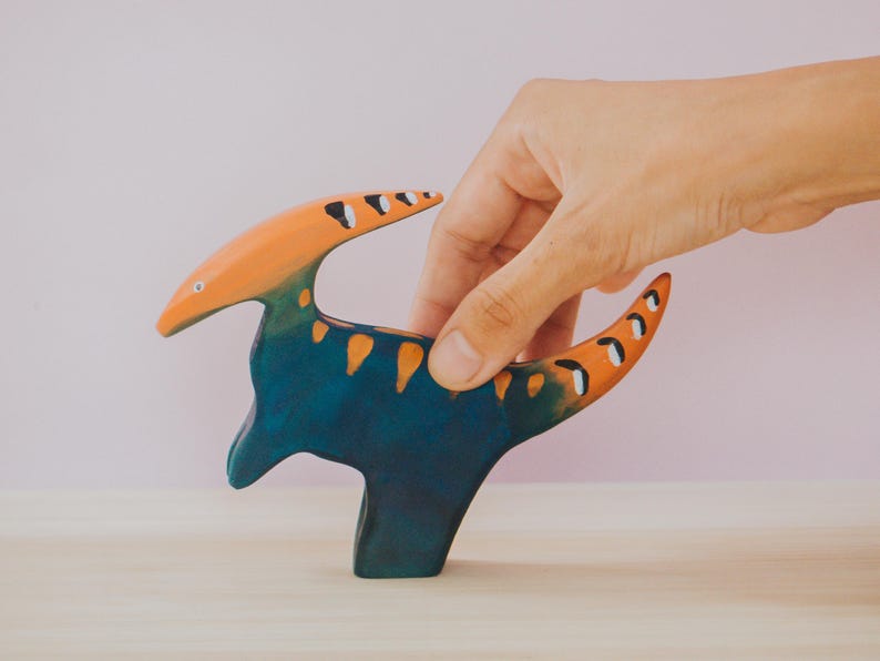 Khám phá kỷ Jura cùng khủng long Parasaurolophus gỗ thủ công. Được chạm khắc từ gỗ tự nhiên và sơn tay với màu sắc sinh động, sản phẩm không chỉ là đồ chơi Montessori & Waldorf giúp trẻ học hỏi về thế giới tiền sử mà còn là món quà độc đáo cho những bé mê khủng long.