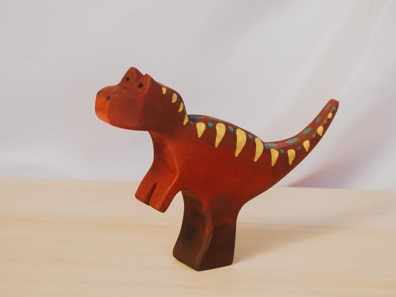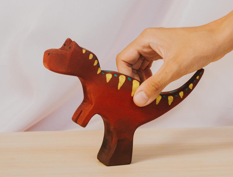 Trở về thời tiền sử cùng khủng long T-rex gỗ thủ công. Được làm từ gỗ tự nhiên và sơn tay tinh xảo, sản phẩm mang phong cách Montessori – Waldorf, giúp trẻ phát triển trí tưởng tượng, kể chuyện và kỹ năng vận động tinh. Với các cạnh bo tròn an toàn, chú T-rex này vừa là món đồ chơi giáo dục, vừa là vật trang trí độc đáo cho bé yêu thích thế giới khủng long.