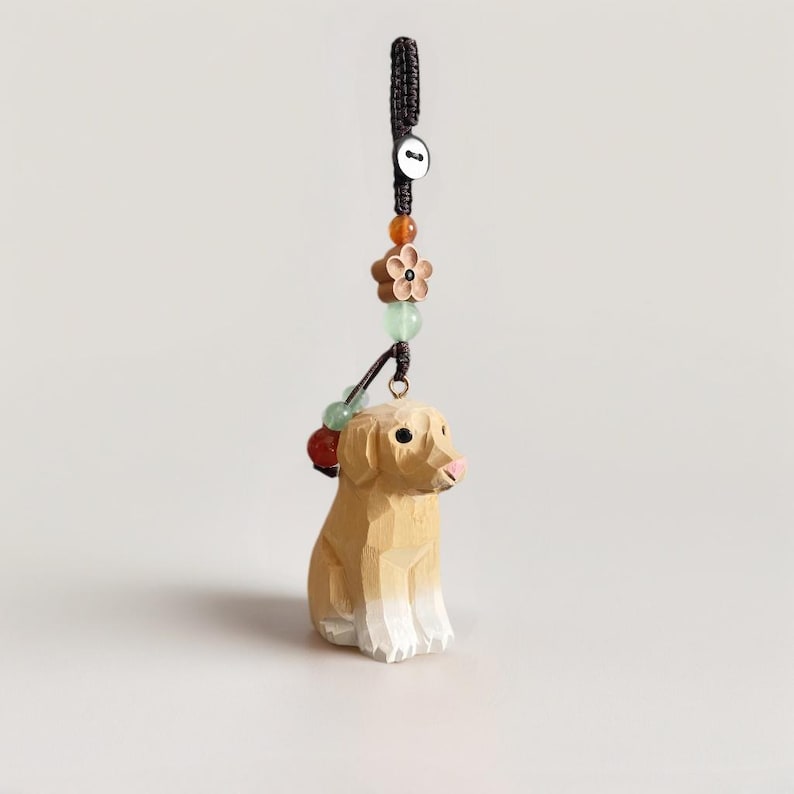 Móc khóa chó Labrador/Golden Retriever gỗ điêu khắc thủ công
