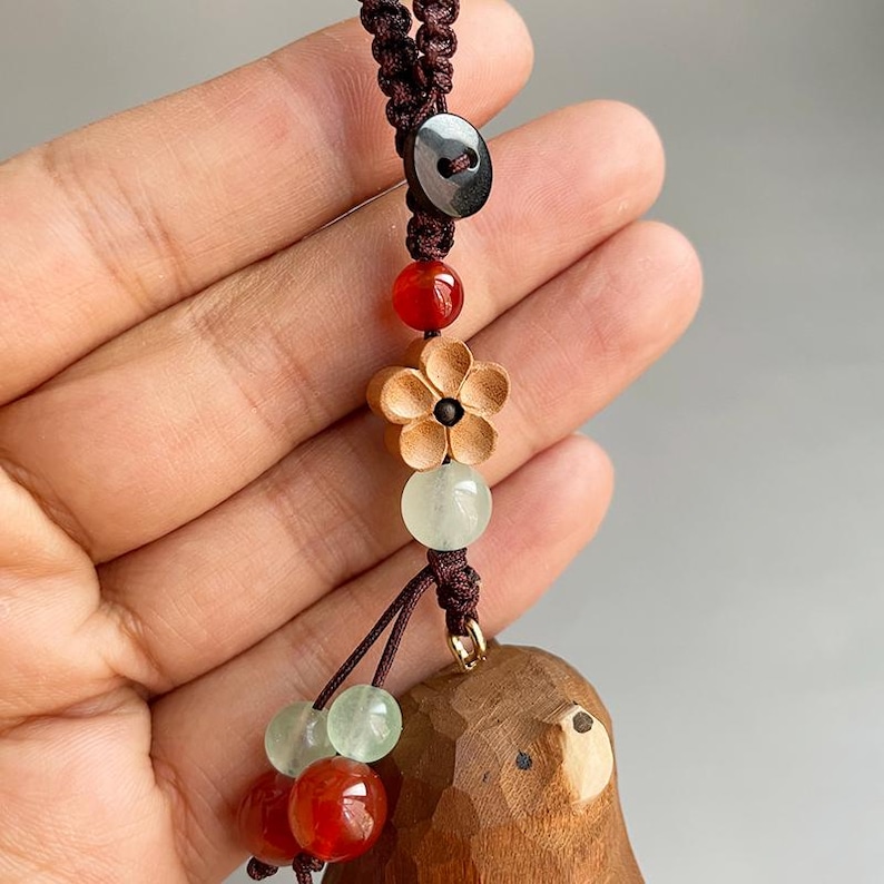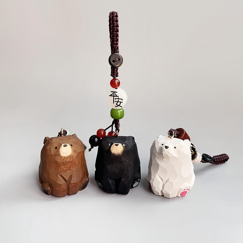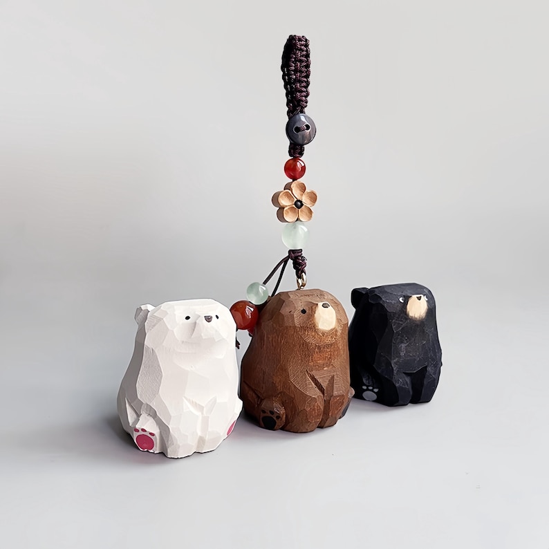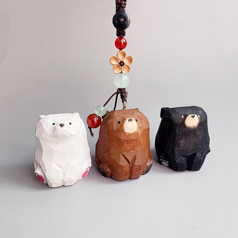 Móc khóa gấu đáng yêu được chạm khắc thủ công từ gỗ Basswood tự nhiên, sơn tay tinh xảo, đính hạt pha lê cao cấp và chuông kim loại có thể tháo rời; tượng gỗ cỡ 35 × 30 × 33 mm gắn dây bện dài 7 cm, nhẹ gọn để treo chìa khóa, balô hay túi xách. Giữ sản phẩm bền đẹp bằng cách lau nhẹ bằng khăn mềm khô, tránh nước, hóa chất và nhiệt cao; định kỳ thoa lớp dầu khoáng hoặc sáp ong mỏng dưỡng gỗ và dùng khăn sợi nhỏ vệ sinh hạt pha lê, kim loại.
