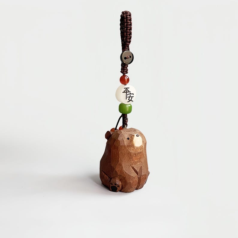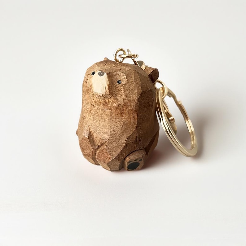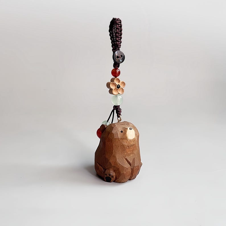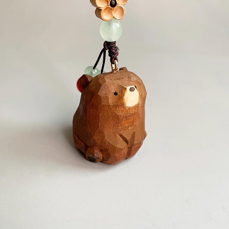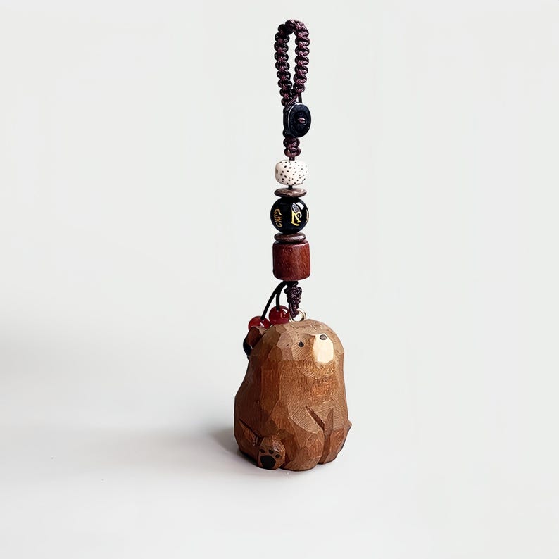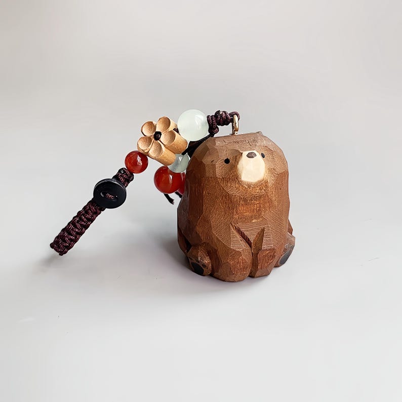 Móc khóa gấu nâu gỗ điêu khắc thủ công