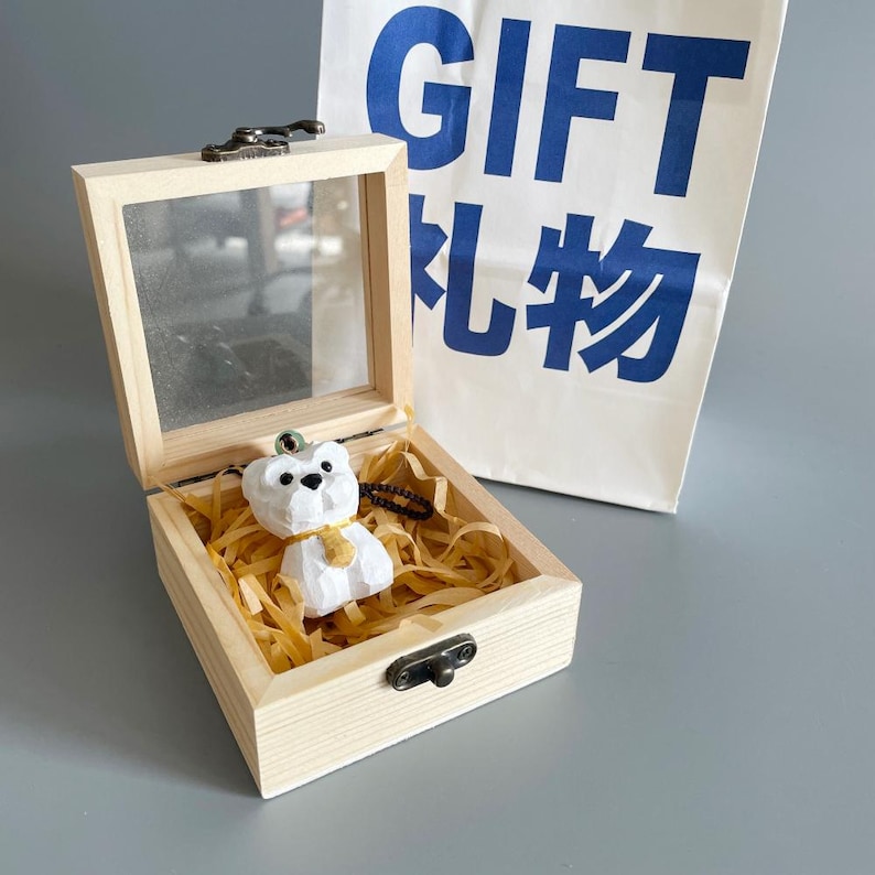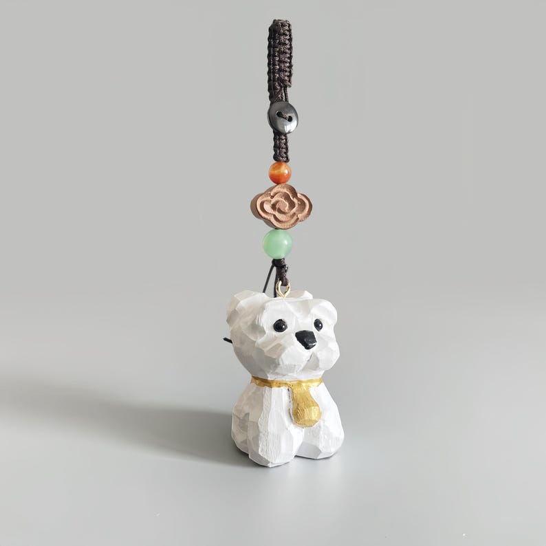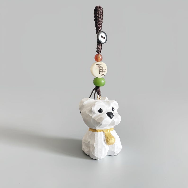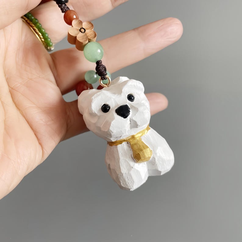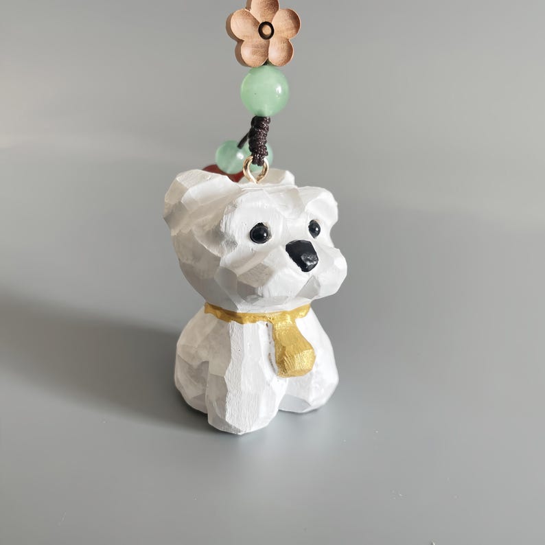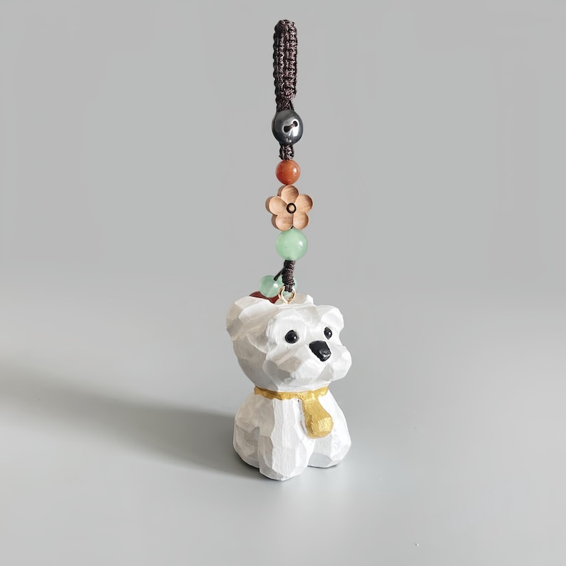 Móc Khóa Gỗ Chó Schnauzer 4x3 cm, chạm tay