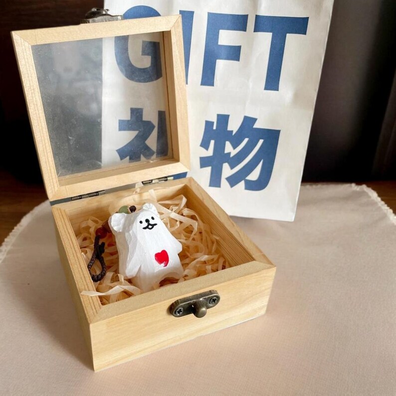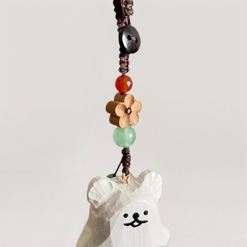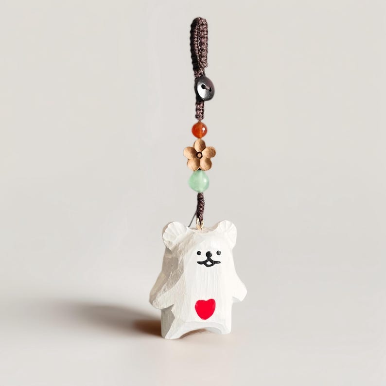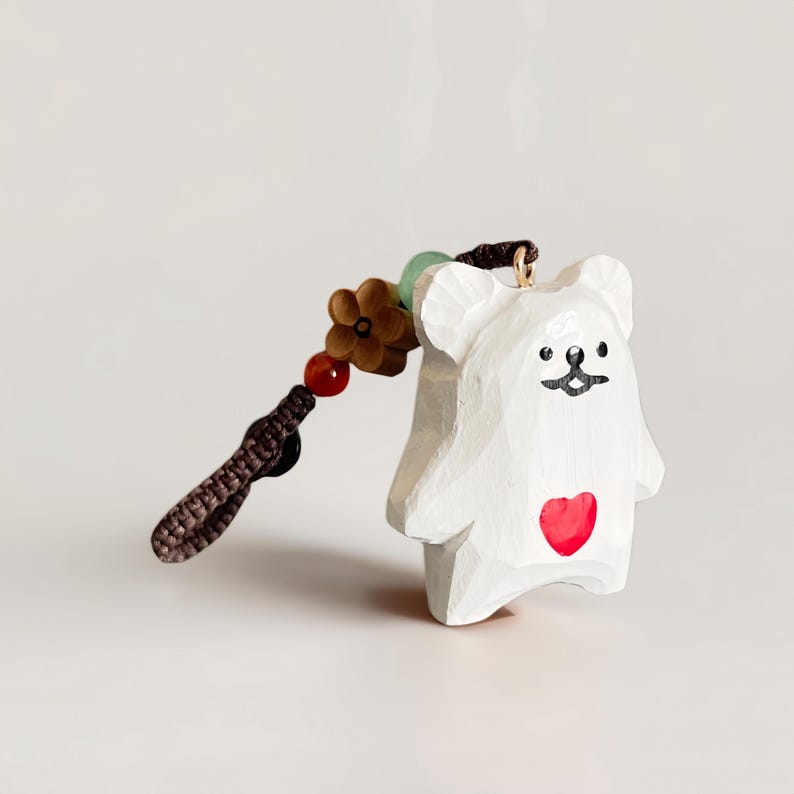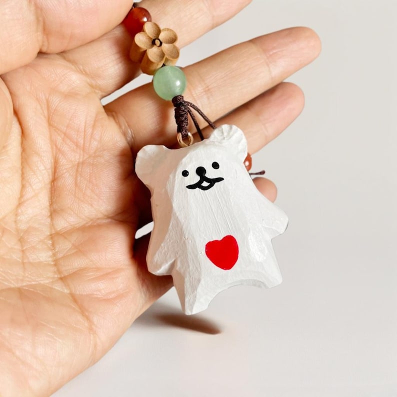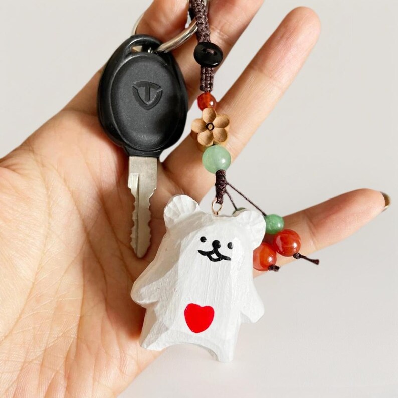 Móc khóa gỗ chó trái tim 4.3x3.7x2 cm thủ công