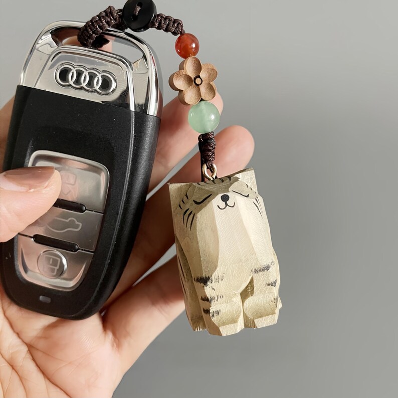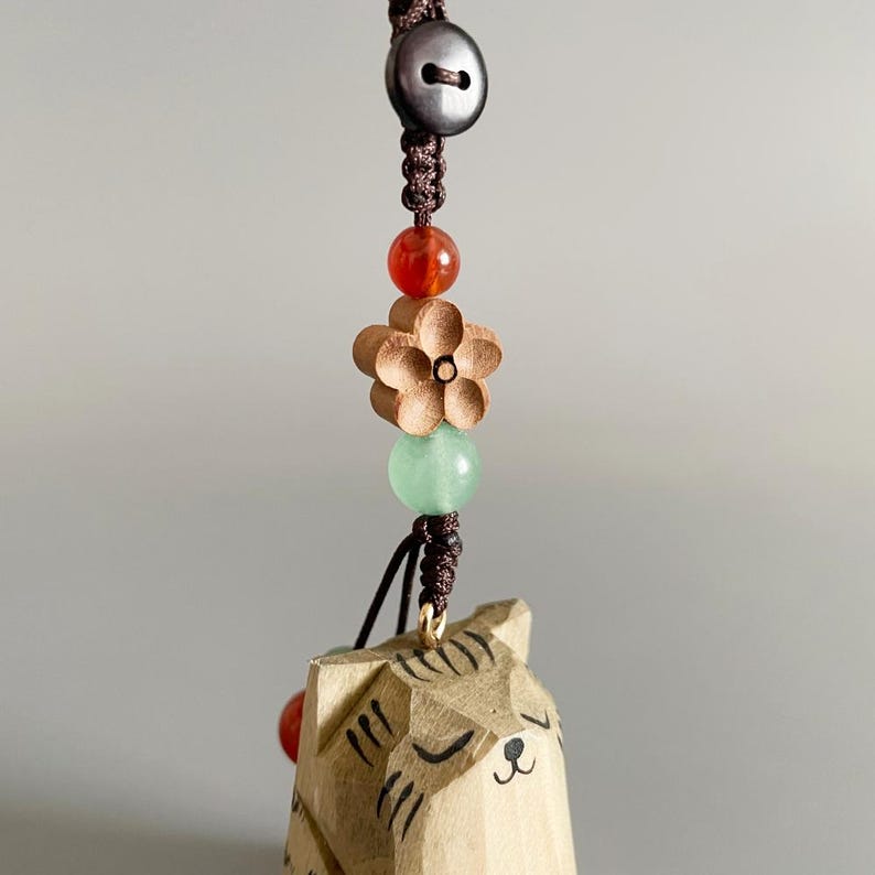 Mang nét dễ thương và mộc mạc đến chìa khóa, túi xách với móc khóa gỗ mèo hoa chạm khắc – tô màu thủ công tinh tế. Kích thước nhỏ gọn khoảng 4 cm, dây bện tay 7 cm chắc chắn; gỗ basswood tự nhiên kết hợp hạt pha lê tạo tổng thể thanh thoát, nổi bật khi treo balo, ví hay gương xe. Phù hợp làm quà tặng cho người yêu mèo. Made in Vietnam.
