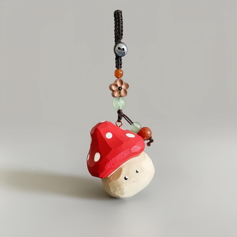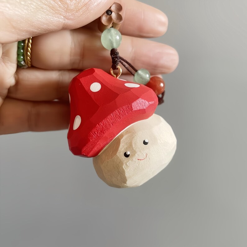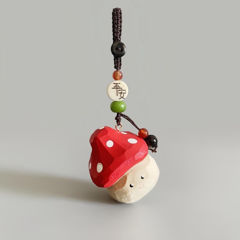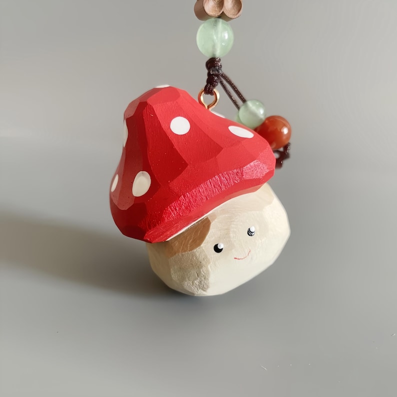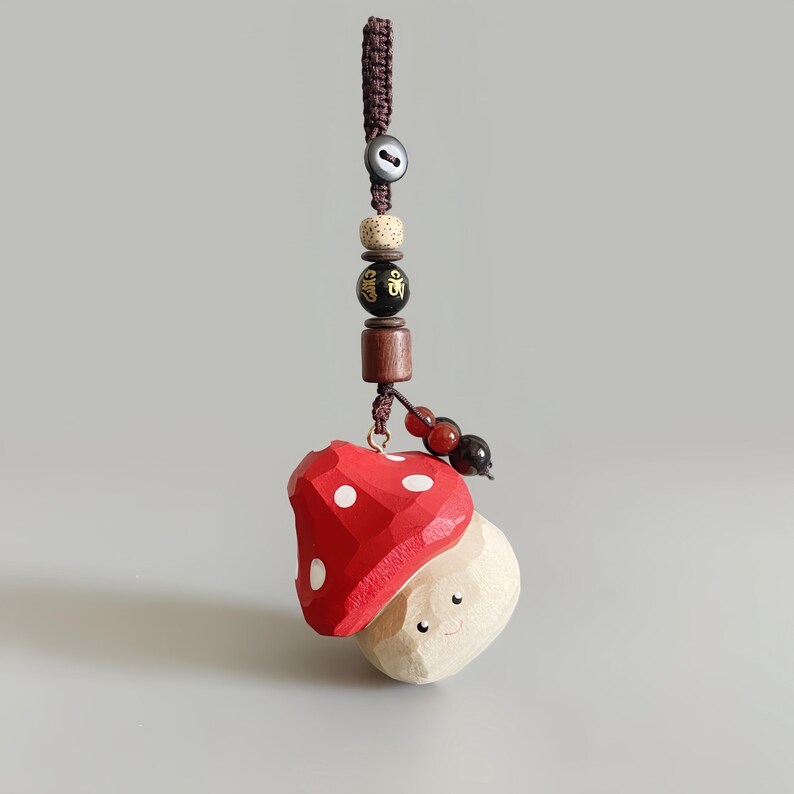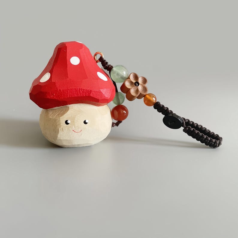Mang nét đáng yêu nổi bật cho chìa khóa và balo với móc khóa gỗ nấm đỏ chấm trắng chạm tay tỉ mỉ—nhẹ bền, form tròn xinh, dễ phối nhiều phong cách.