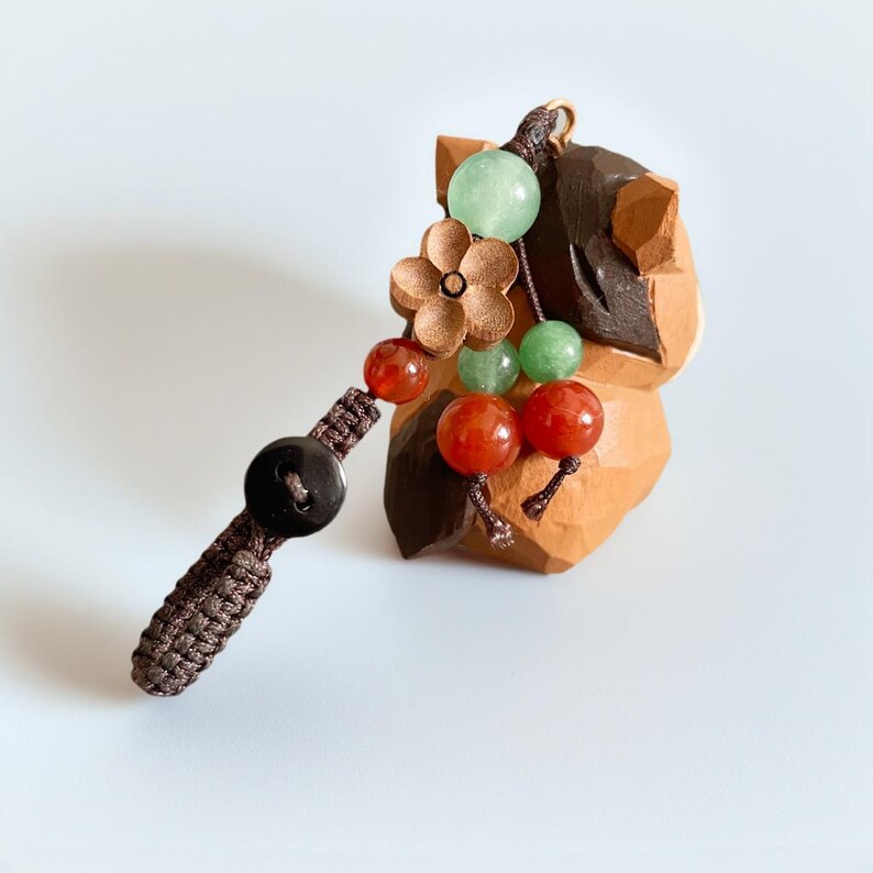 - Chất liệu: gỗ basswood tự nhiên; hạt pha lê trang trí; dây đan thủ công.