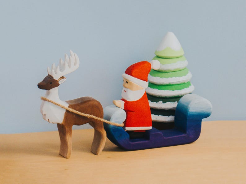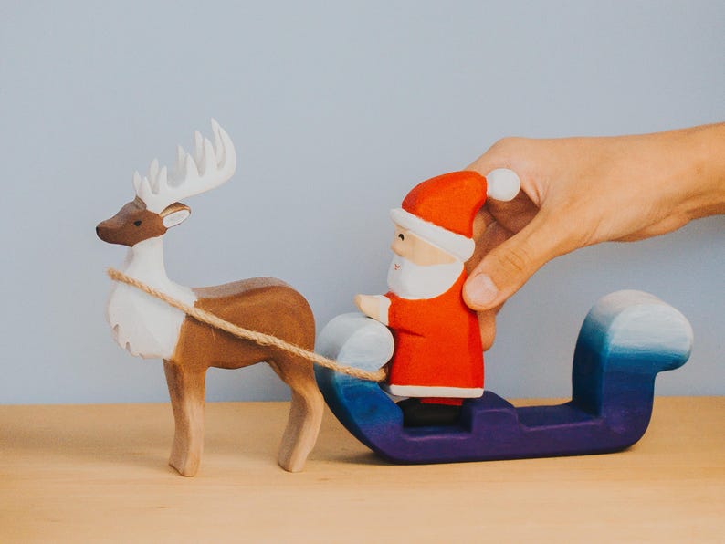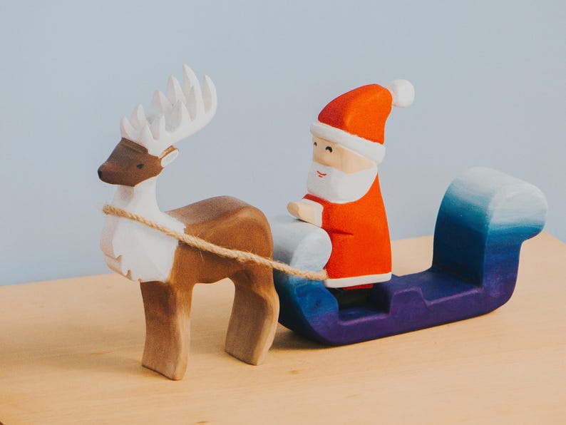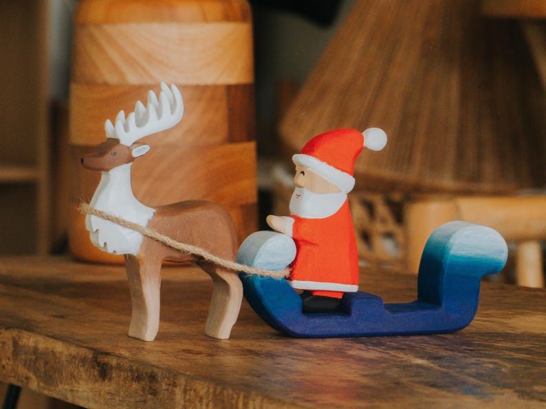 Mang biểu tượng Giáng Sinh kinh điển vào nhà bạn với ông già Noel gỗ thủ công kèm xe trượt và tuần lộc. Được chạm khắc từ gỗ tự nhiên và sơn tay rực rỡ, sản phẩm tái hiện hình ảnh Santa Claus ngồi trên xe trượt, kéo bởi tuần lộc, mang đến không khí ấm áp và niềm vui cho mùa lễ hội. Đây vừa là món đồ chơi Montessori – Waldorf, vừa là vật trang trí Noel ý nghĩa.