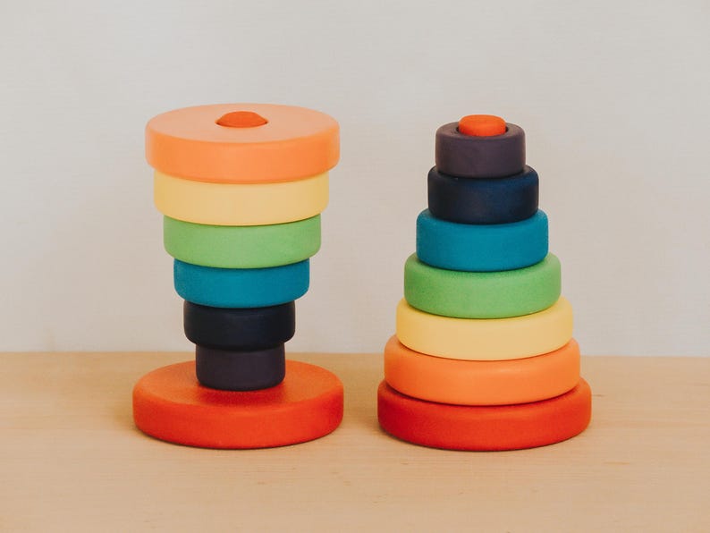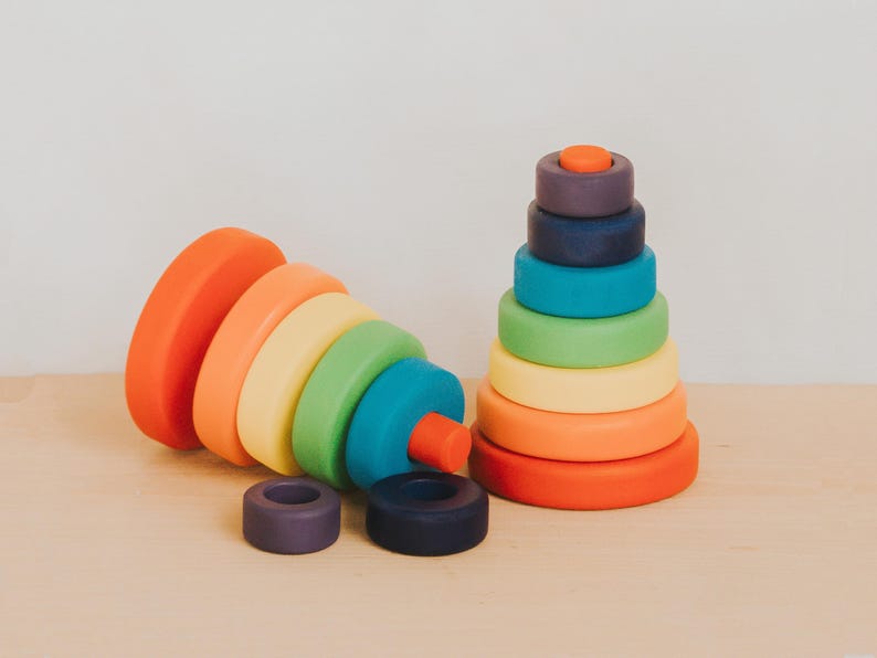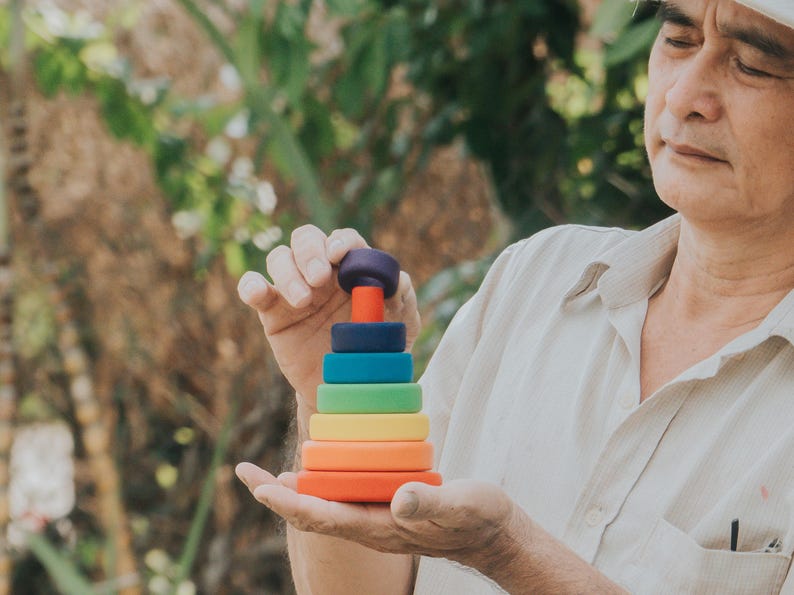 Khơi dậy khả năng sáng tạo và học tập sớm với tháp xếp vòng cầu vồng bằng gỗ thủ công. Với thiết kế nhiều vòng tròn màu sắc, đồ chơi giúp trẻ phát triển vận động tinh, phối hợp tay – mắt, khả năng tư duy không gian và giải quyết vấn đề theo phong cách Montessori và Waldorf.