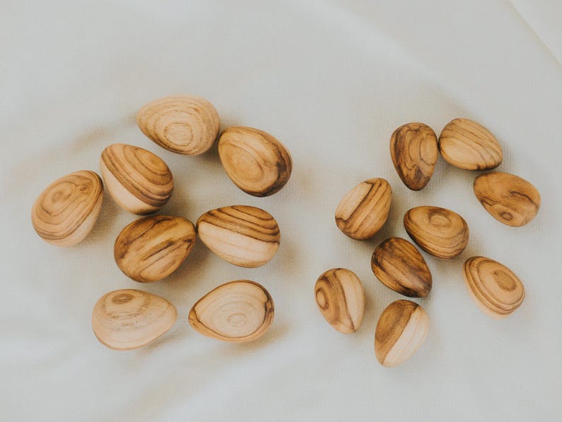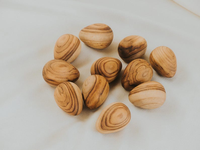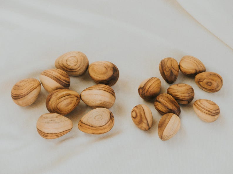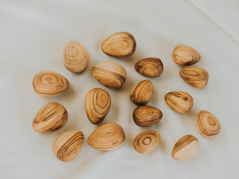 Mang không khí lễ hội về nhà bạn với trứng gỗ teak thủ công. Được chạm khắc từ gỗ teak cao cấp, mỗi quả trứng đều có vân gỗ độc đáo, nhẵn mịn và được hoàn thiện bằng sáp ong tự nhiên, vừa bền đẹp vừa an toàn. Đây không chỉ là món quà ý nghĩa dịp Phục Sinh mà còn là đồ chơi Montessori giúp bé khám phá và phát triển tư duy qua trò chơi giả lập.