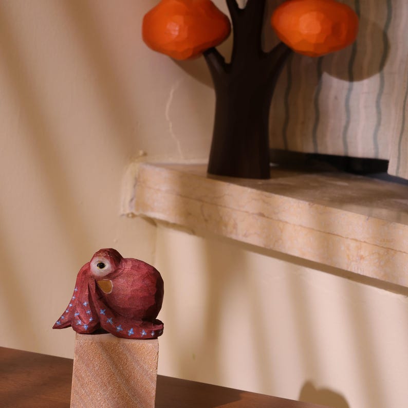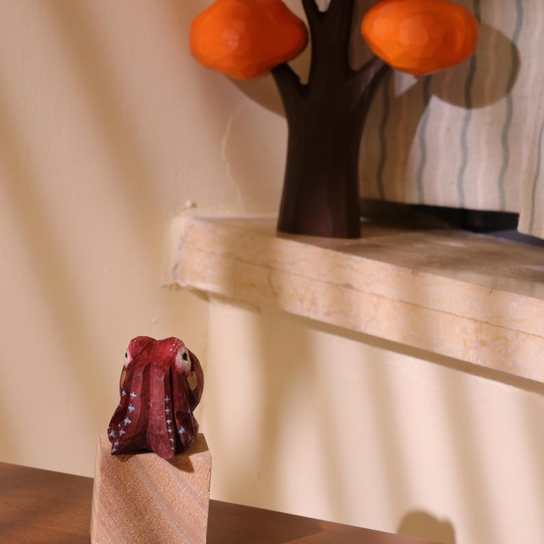 Trang trí không gian sống với tượng bạch tuộc gỗ chạm khắc thủ công – điểm nhấn nhỏ gọn, mang chất mộc ấm áp cho bàn làm việc, kệ sách hay góc thư giãn. Kích thước 5.8 × 4.3 cm, dễ bày trí đơn lẻ hoặc kết hợp các mẫu khác nhau.