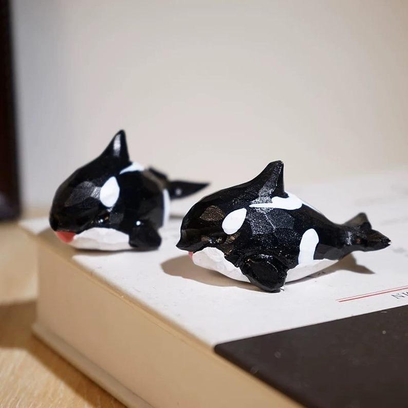 Thêm điểm nhấn biển cả cho góc làm việc với tượng cá voi sát thủ gỗ điêu khắc mini. Hình khối đa diện hiện đại, nhỏ gọn dễ đặt trên bàn/kệ, phù hợp nhiều phong cách trang trí.