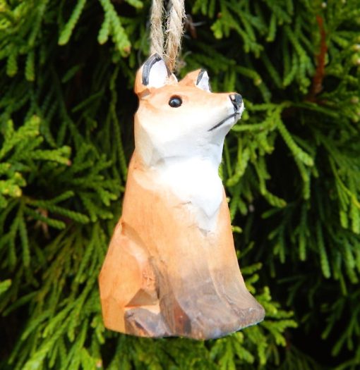Tượng cáo đỏ gỗ điêu khắc mini 6.4 cm sơn tay