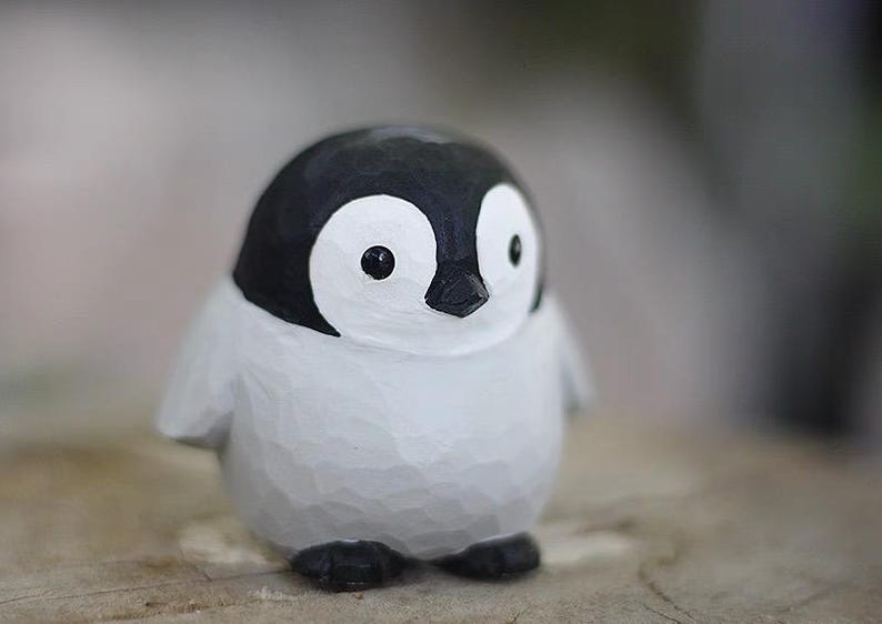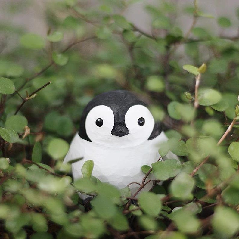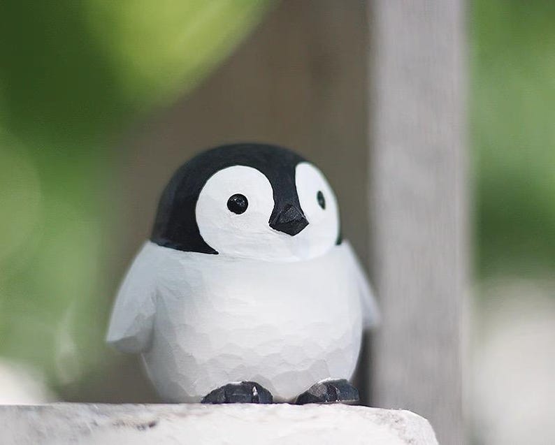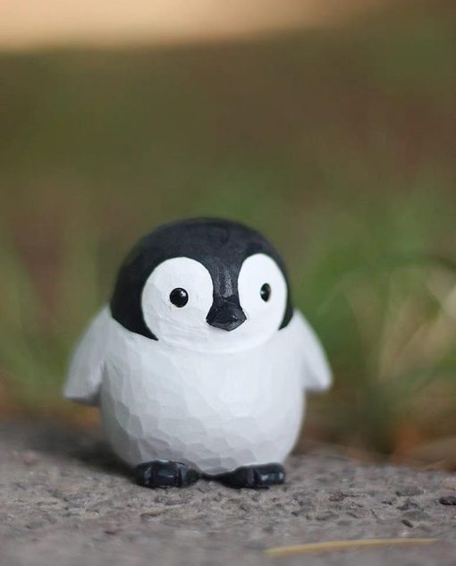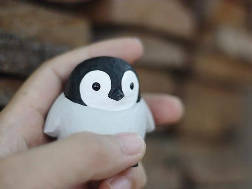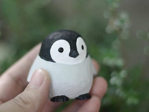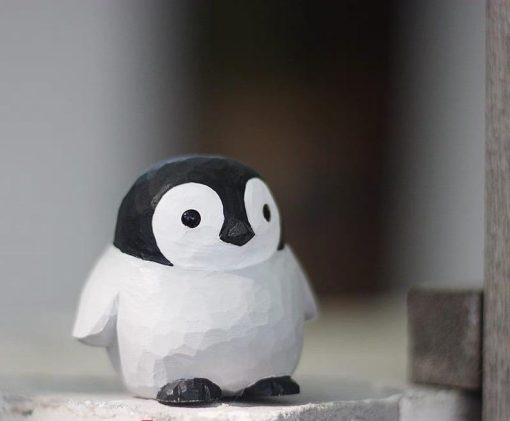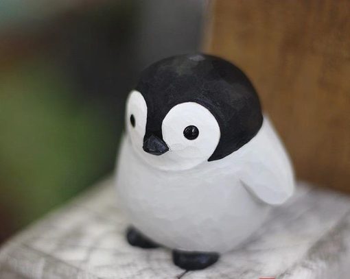 Làm tươi góc làm việc với tượng chim cánh cụt gỗ nhỏ xinh, gam đen-trắng dễ phối, tạo cảm giác vui mắt khi đặt trên bàn/kệ sách.