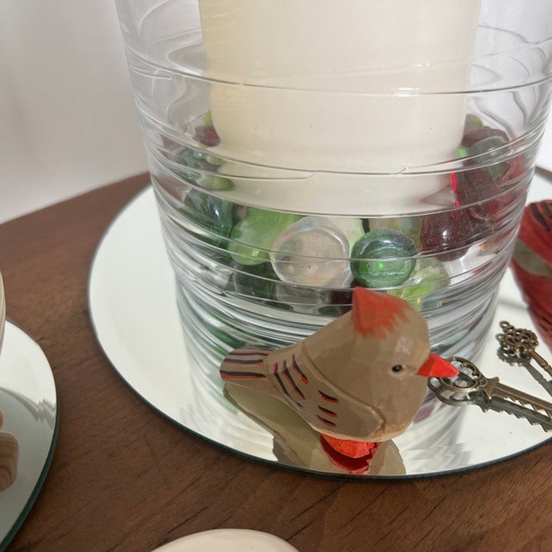 Làm bừng sáng không gian với tượng chim cardinal cái gỗ mini – kích thước nhỏ gọn, đường nét sinh động, lý tưởng cho người yêu chim và bộ sưu tập decor.