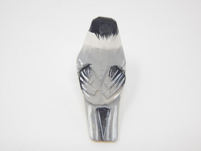 – Thủ công: chạm khắc từ gỗ tái chế, sơn tay bằng sơn gốc nước không độc; mắt thủy tinh long lanh. – Kích thước: 6.4 × 2.5 × 2.5 cm; cầm gọn trong lòng bàn tay, dễ đặt trên bàn/kệ. – Màu sắc: đen–trắng–xám đặc trưng của black-capped chickadee. – Ứng dụng: decor bàn làm việc, kệ sách, tủ kính; làm topper bánh, quà tặng hay bổ sung bộ sưu tập. – Đặc tính: mỗi sản phẩm có khác biệt nhỏ do làm thủ công. – Bảo quản: lau bụi bằng khăn khô mềm; để nơi khô ráo, tránh ẩm và ánh nắng gắt; cất trong hộp khi không dùng. – An toàn: sản phẩm trang trí, không phải đồ chơi; có chi tiết nhỏ – tránh xa trẻ dưới 3 tuổi.