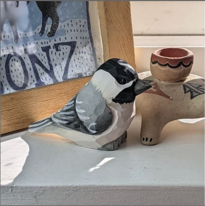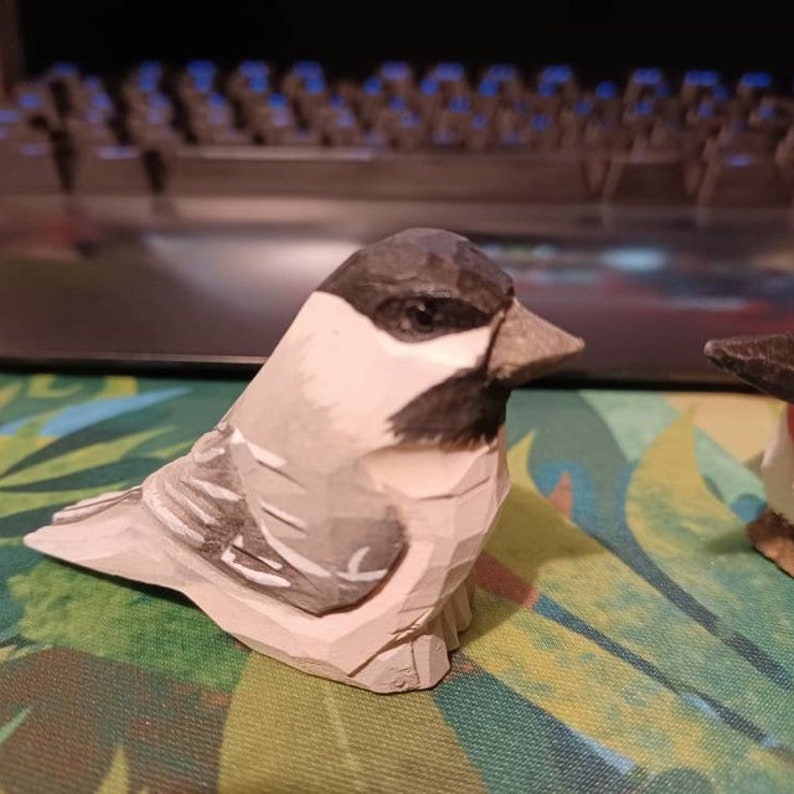 Làm nổi bật góc bàn với tượng chim chickadee gỗ mini – chạm tay tinh xảo, sắc thái tự nhiên và kích thước nhỏ gọn, lý tưởng cho người yêu chim cảnh và người sưu tầm.