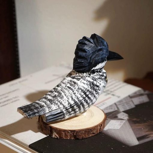 Làm nổi bật góc bàn làm việc với tượng chim gỗ chạm tay – hình dáng sinh động, bề mặt chạm khắc vát cạnh mộc mạc, dễ phối với nhiều phong cách decor.