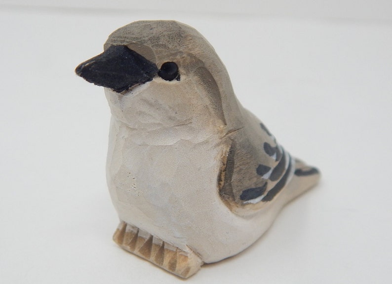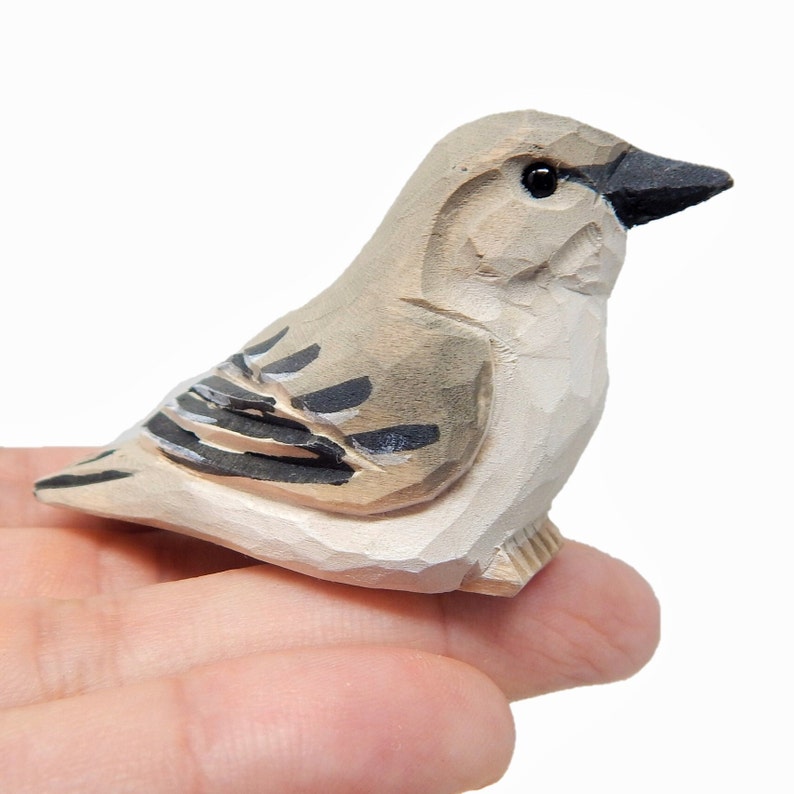 Từng sản phẩm được chạm khắc thủ công từ gỗ bạch dương tái chế, hoàn thiện bằng sơn gốc nước không độc hại; đôi mắt thủy tinh tạo vẻ sinh động. Kích thước 6.4 × 2.5 × 2.5 cm (Dài × Rộng × Cao) vừa vặn trong lòng bàn tay – thích hợp trưng bày, sưu tầm hoặc làm quà cho người yêu chim cảnh. Do làm thủ công, mỗi tượng có thể khác biệt nhẹ về vân gỗ và sắc độ.