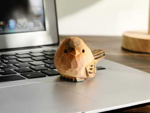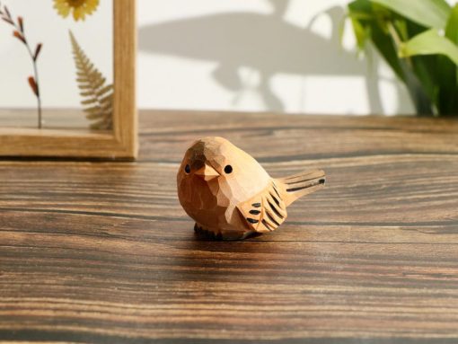 Tượng chim sẻ gỗ mini mang lại cảm giác ấm áp và dễ thương cho bàn làm việc, kệ sách hay taplo xe. Mỗi sản phẩm được chạm khắc thủ công tỉ mỉ, giữ vân gỗ tự nhiên nổi bật — món quà nhỏ xinh cho người yêu động vật và đồ thủ công.