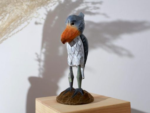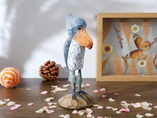 Tượng chim Shoebill khắc gỗ giúp không gian làm việc và kệ sách nổi bật ngay tức thì, nhỏ gọn dễ đặt để, là điểm nhấn nghệ thuật tinh tế cho người yêu décor.